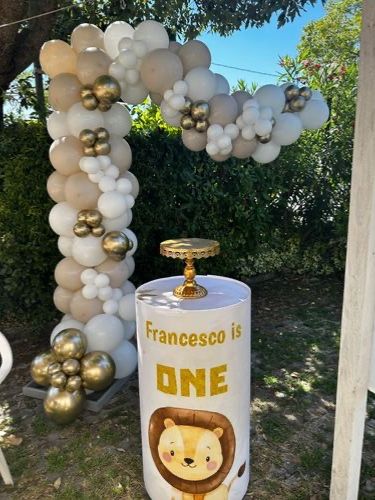 Allestimento Primo Compleanno Safari Elegante – Balloon Arch Beige e Oro con Sweet Table Personalizzato